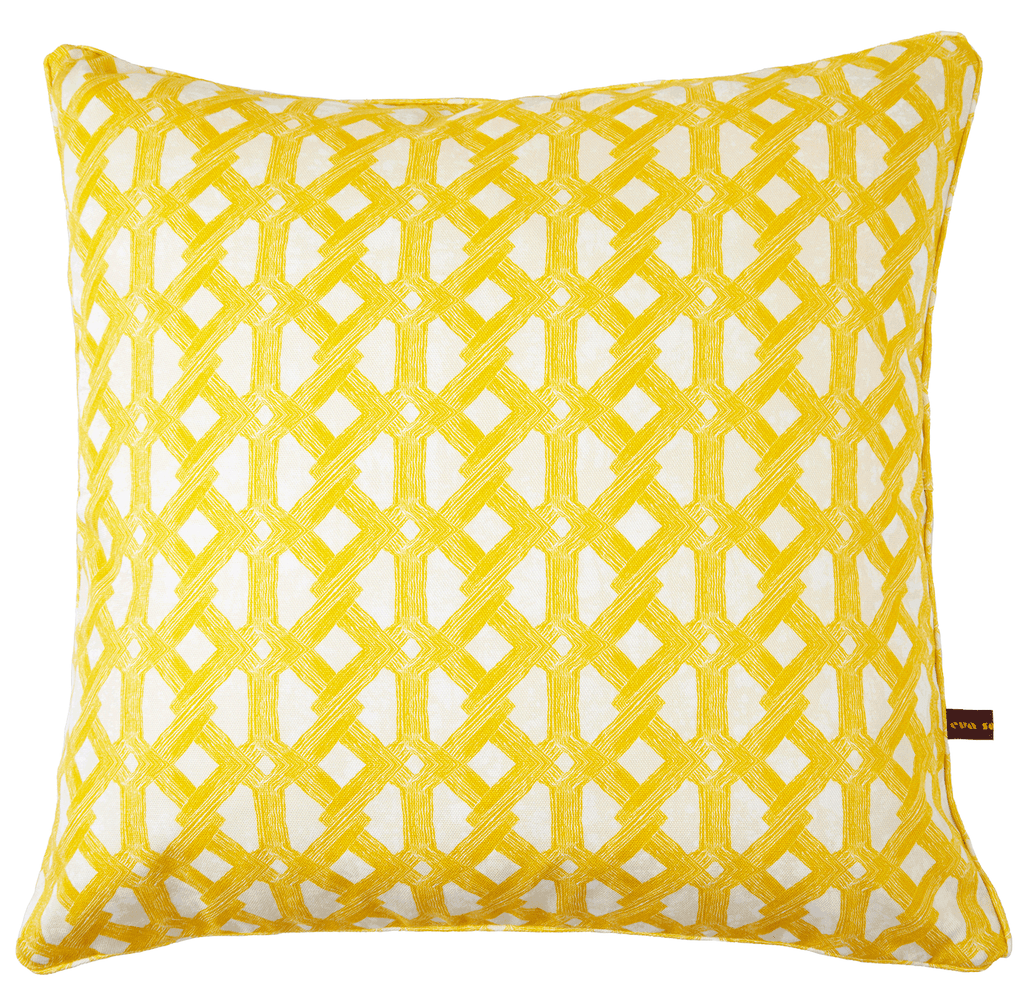 Inspired by Tropical Modernism and the architectural geometry of West Africa’s post-colonial era, its intricate sunny yellow lattice brings warmth, light, and cheerful sophistication to modern living spaces.