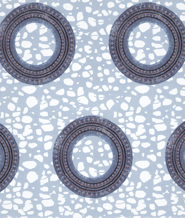 Bring rhythm and lightness into your home with the Ayo Blue wallpaper, part of the award-winning Robert Langford x Eva Sonaike collaboration. This serene design features a soft blue-grey base with delicately layered circular motifs in muted mauve, chocolate and charcoal tones, creating a sense of movement and harmony on the wall.